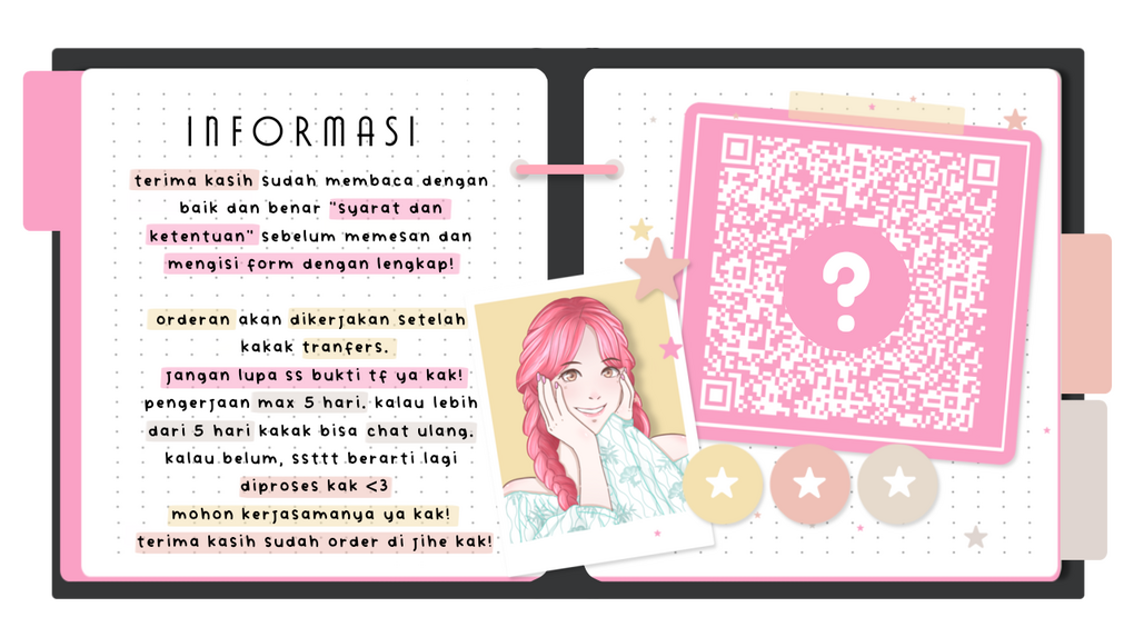 ⋆ Need : 2/3 Foto (diutamakan setengah badan) + HD.